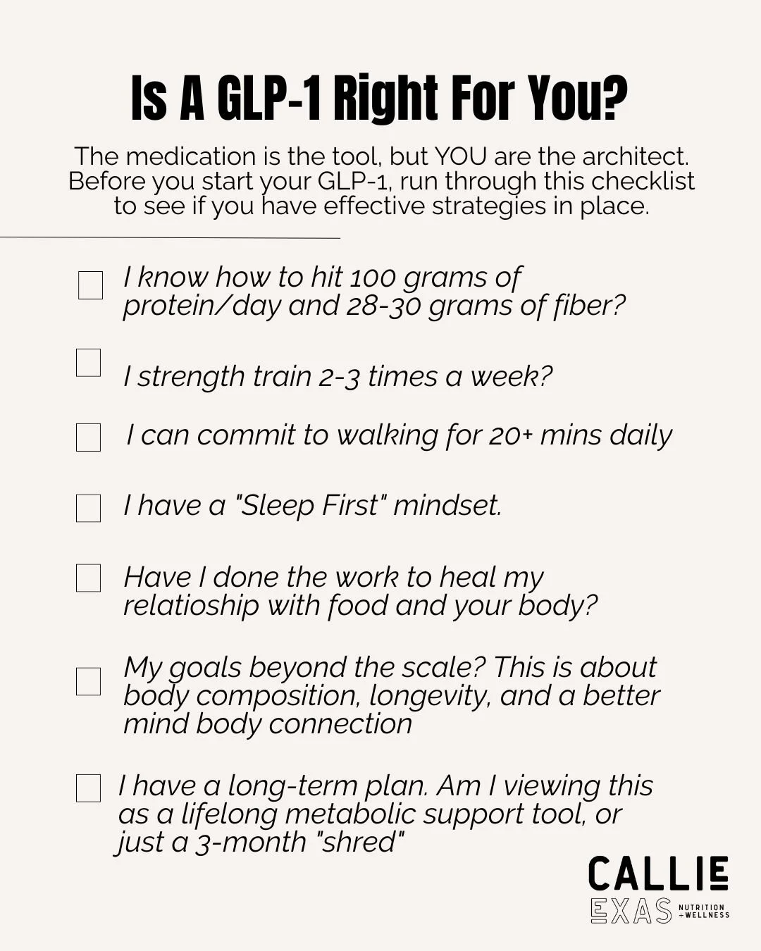 If you are thinking of starting a GLP-1 medication this year, here are the four non-negotiables I recommend having in place before your fill a prescription.